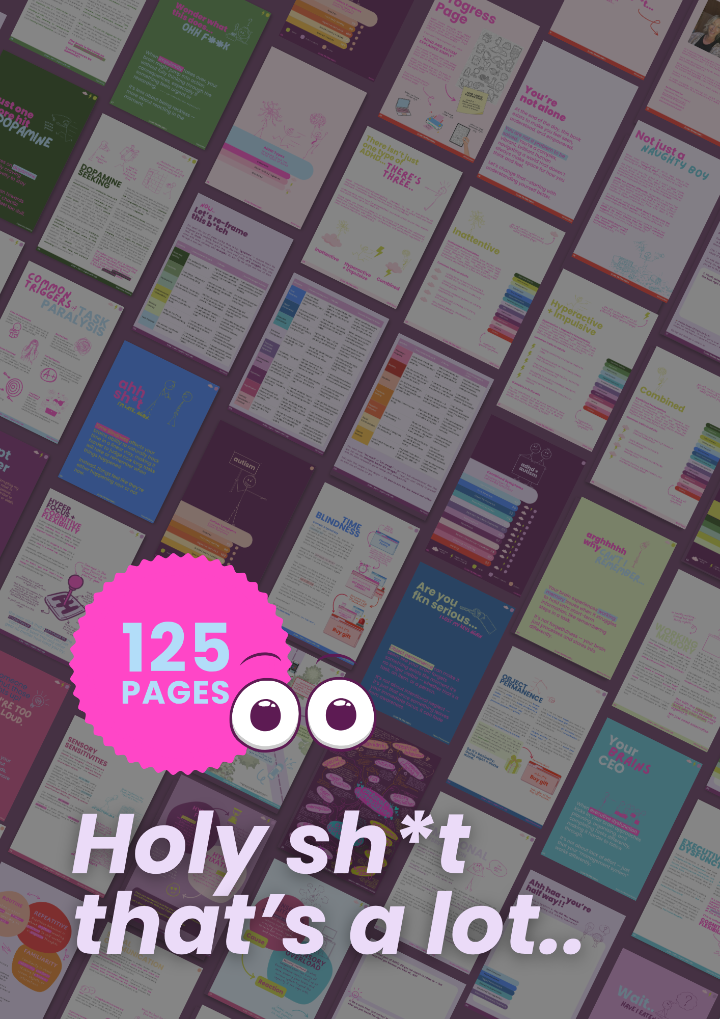 Because F**K boring - we want bright. Each page is specifically designed to hold your attention and gift your cute lil' dopamine hungry brain with that hit it's desperately searching for!