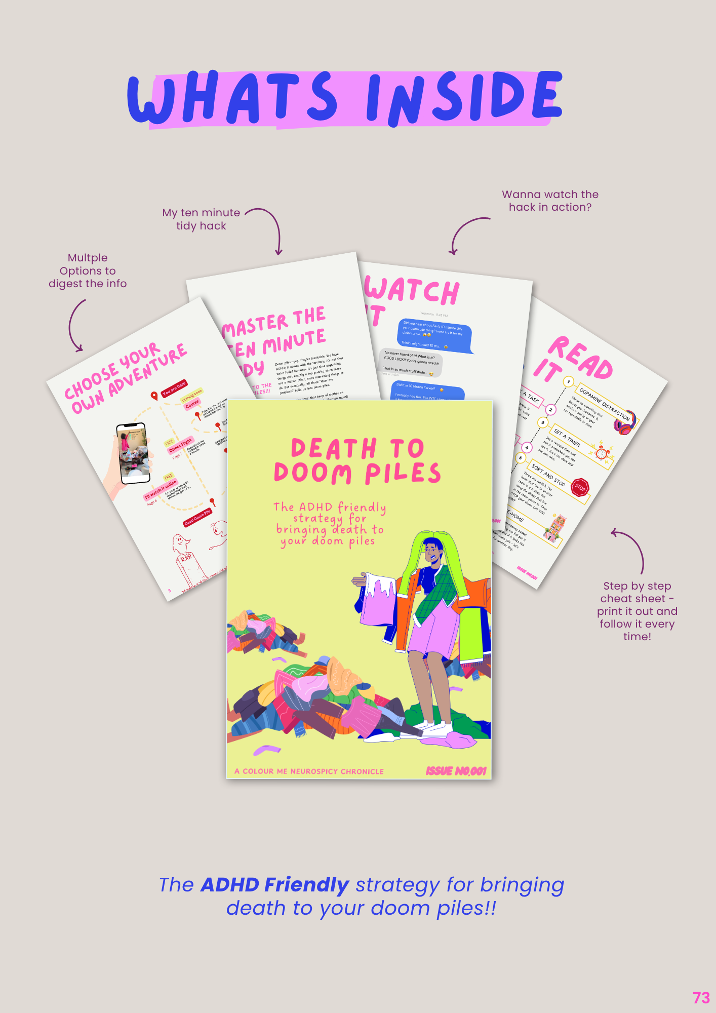 This is just the beginning! If you love the Mini Mag, you’ll love the full Doom Pile Magazine experience, where we go even deeper with three full weeks of ADHD-friendly decluttering strategies, guided body doubling, and dopamine-packed content.