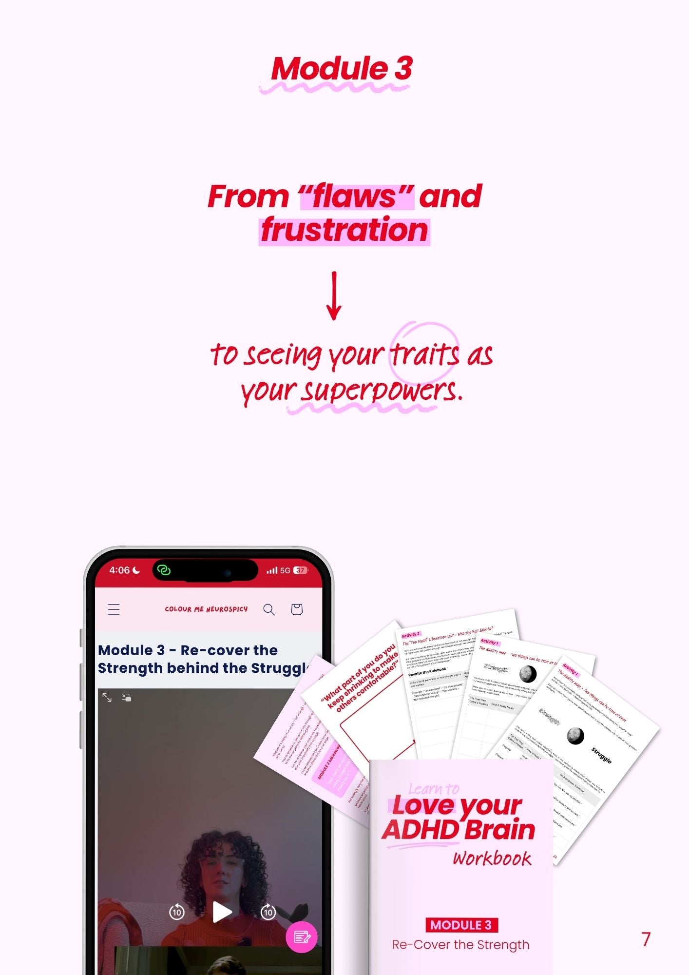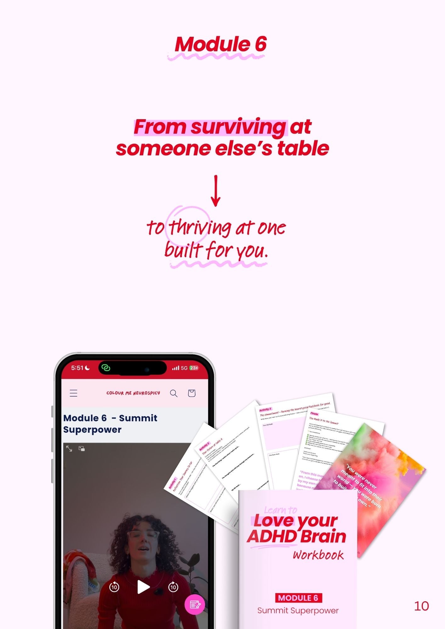 In under 60 minutes, go from feeling stuck in survival mode to embracing your ADHD brain, unlocking your true potential, and rekindling your relationship with yourself in a way that’s rooted in love and kindness.